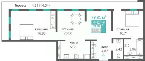 69,98 м²