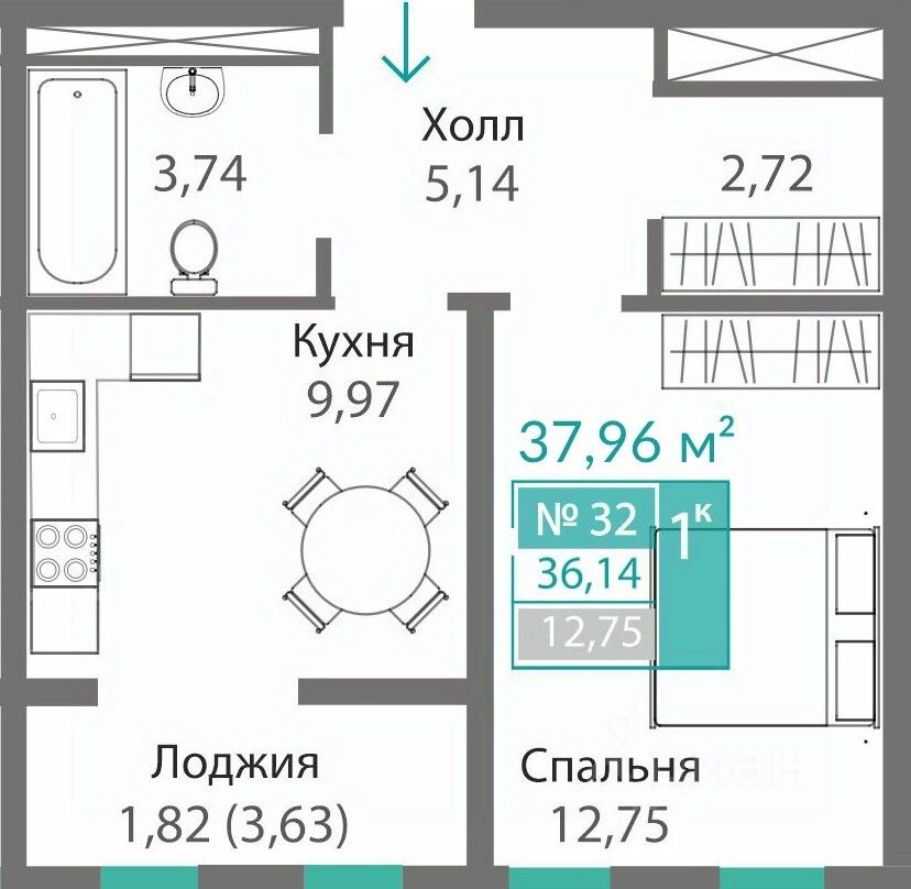 Продаётся 1-комнатная квартира в строящемся доме (Дом 1 (Секции Т2.2, Т4.1)), срок сдачи: I-кв. 2029, общей площадью 36.14 кв.м., на 4 этаже. Новый жилой комплекс "Благо" от застройщика "Монолит" расположен по адресу: Республика Крым, Симферопольский район, село Перово
