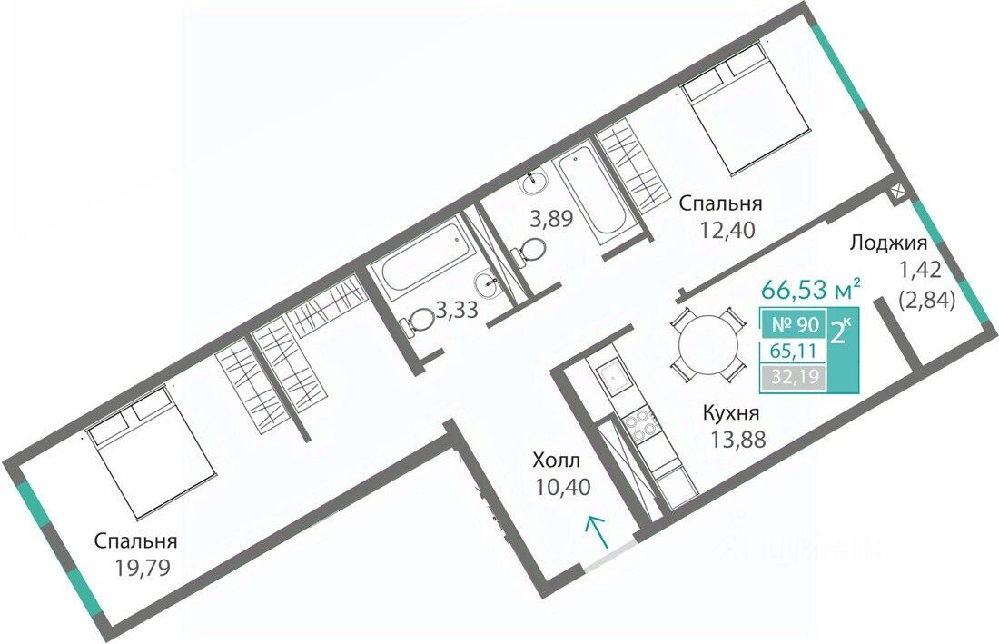 Продаётся 2-комнатная квартира в строящемся доме (Дом 1 (Секции Т2.2, Т4.1)), срок сдачи: I-кв. 2029, общей площадью 65.11 кв.м., на 6 этаже. Новый жилой комплекс "Благо" от застройщика "Монолит" расположен по адресу: Республика Крым, Симферопольский район, село Перово