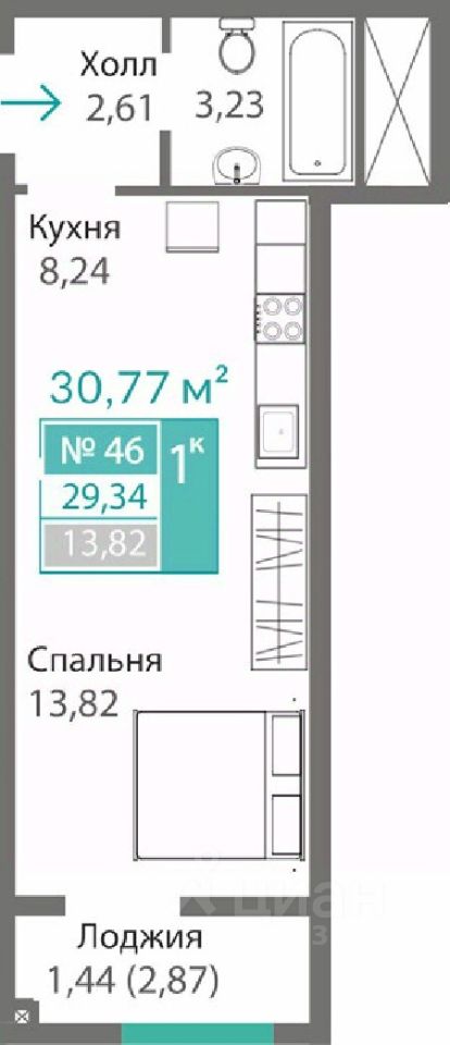 Продаётся 1-комнатная квартира в строящемся доме (Дом 4 (Секция Т5)), срок сдачи: I-кв. 2029, общей площадью 29.34 кв.м., на 6 этаже. Новый жилой комплекс "Благо" от застройщика "Монолит" расположен по адресу: Республика Крым, Симферопольский район, село Перово