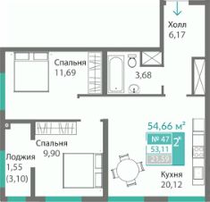 Продаётся 2-комнатная квартира в строящемся доме (Дом 4 (Секция Т5)), срок сдачи: I-кв. 2029, общей площадью 53.11 кв.м., на 6 этаже. Новый жилой комплекс "Благо" от застройщика "Монолит" расположен по адресу: Республика Крым, Симферопольский район, село Перово