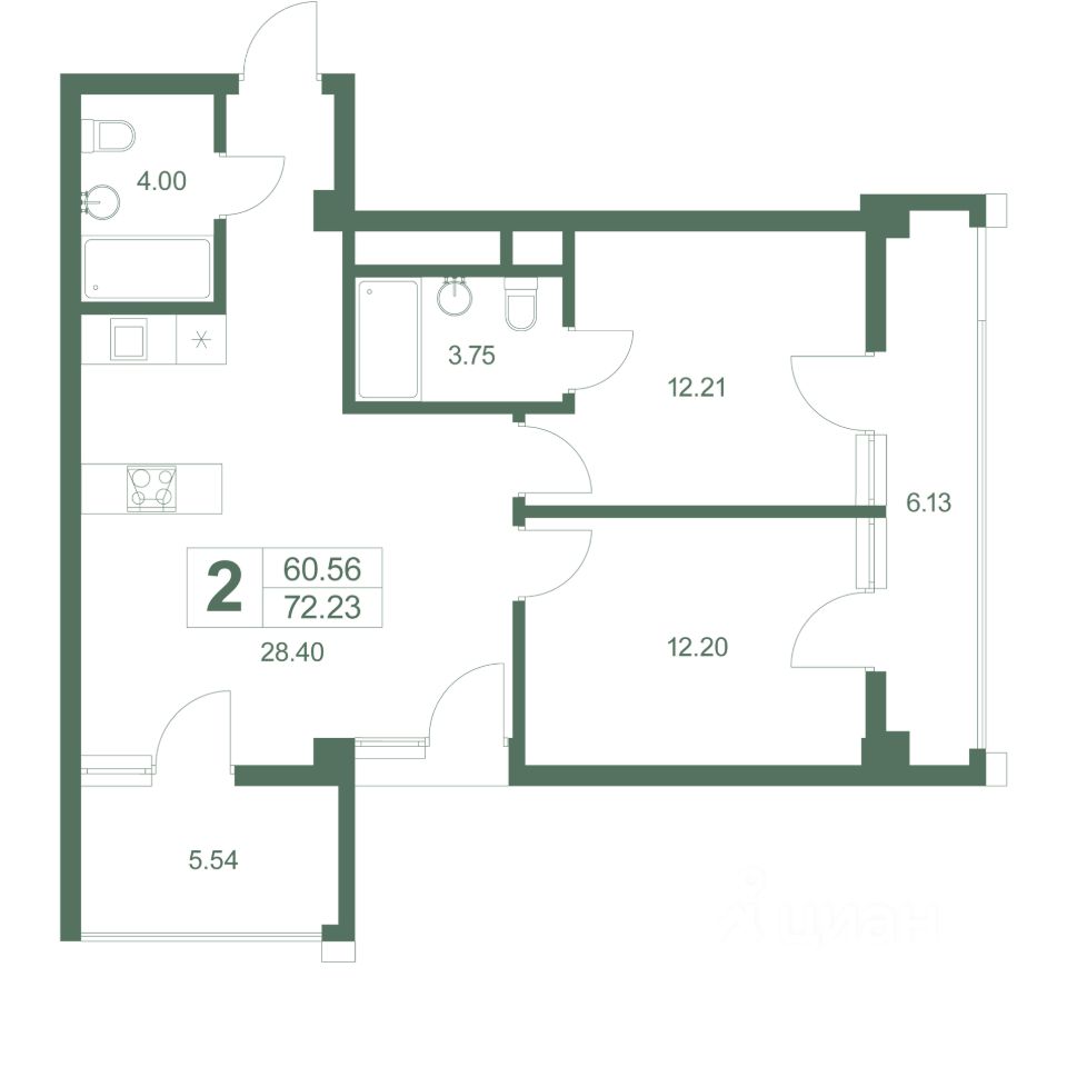 Продаются 3-комнатные апартаменты в сданном доме (Корпус 1), срок сдачи: IV-кв. 2024, общей площадью 72.23 кв.м., на 2 этаже.