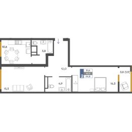 Общая площадь64,8 м²