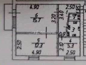 Планировка: Две изолированные комнаты (15.7 м² + 12.3 м²), кухня 5.3 м², совмещённый санузел, балкон.