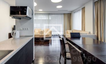 В квартире выполнен современный ремонт, интерьер продуман до мелочей и оформлен с использованием качественных материалов. Панорамные окна наполняют пространство светом и открывают живописные виды на горы и парк.