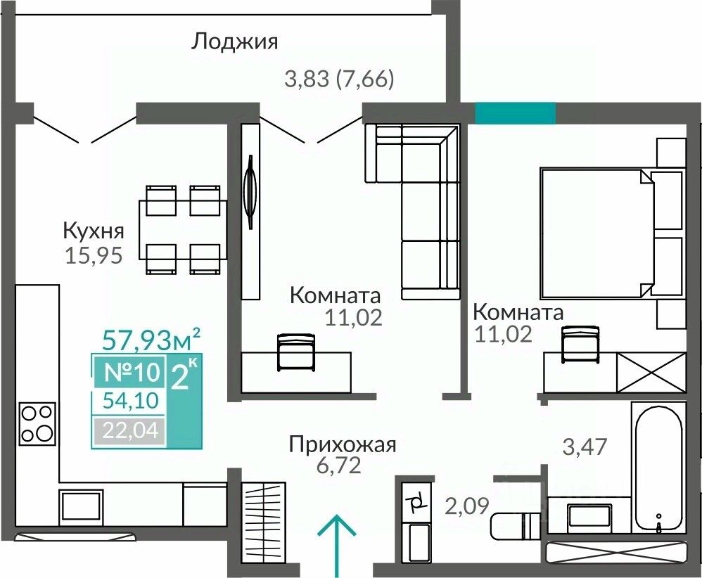 Продаётся 2-комнатная квартира в строящемся доме (С7), срок сдачи: III-кв. 2027, общей площадью 54.1 кв.м., на 2 этаже. Жилой квартал "Абрикос" - начало яркой истории жизни в прогрессивном районе Симферополя - Семья городских кварталов "Крымская Роза".