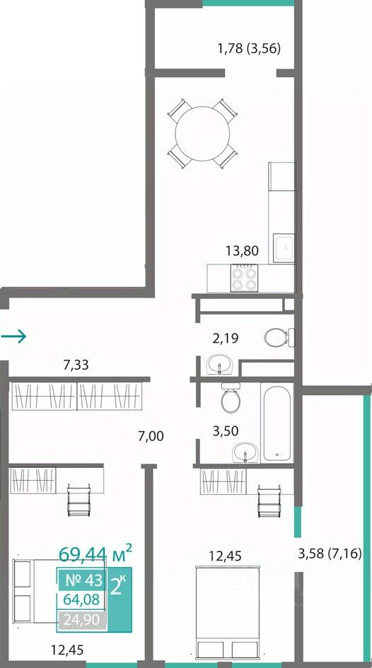 Продаётся 2-комнатная квартира в строящемся доме (3 этап (Секция Б7.1)), срок сдачи: I-кв. 2027, общей площадью 64.08 кв.м., на 7 этаже. Новый жилой квартал "Горизонты" от застройщика "Монолит" расположен по адресу Республика Крым, Симферополь, микрорайон Крымская роза.