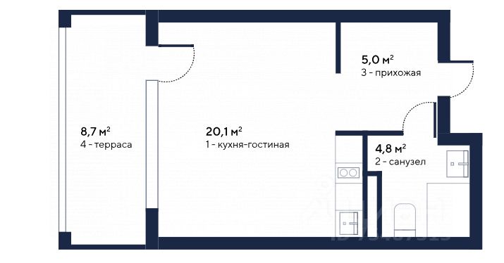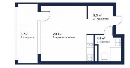 Планировка: однокомнатный апартамент с террасой с лучшим ремонтом от застройщика. Объект сдан. Продажа срочная, по договору цессии.