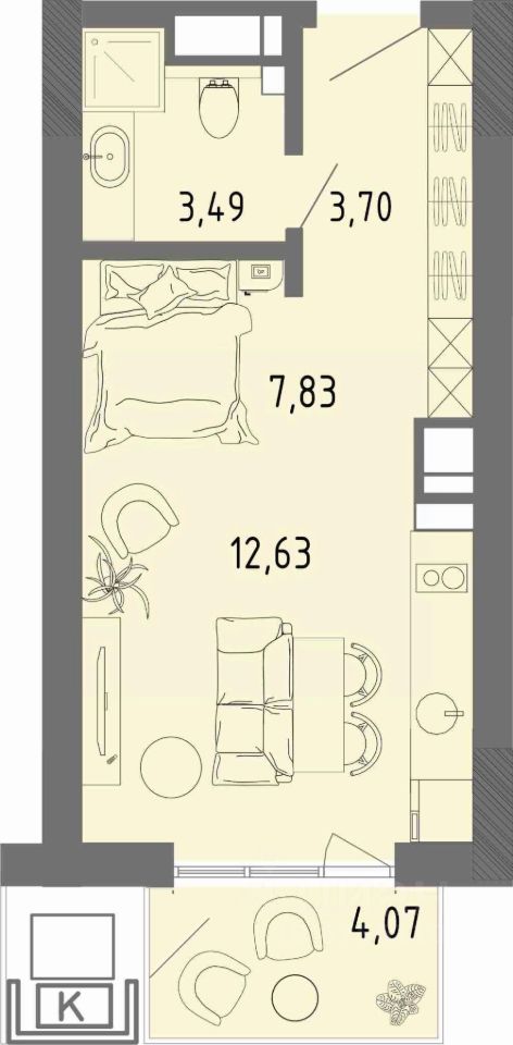 Продаётся квартира 268 площадью 31,72 м2 в новом ЖК СОК