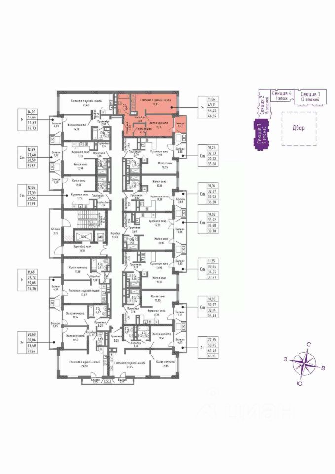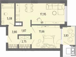Продаётся квартира 38 площадью 46,94 м2 в новом ЖК СОК
