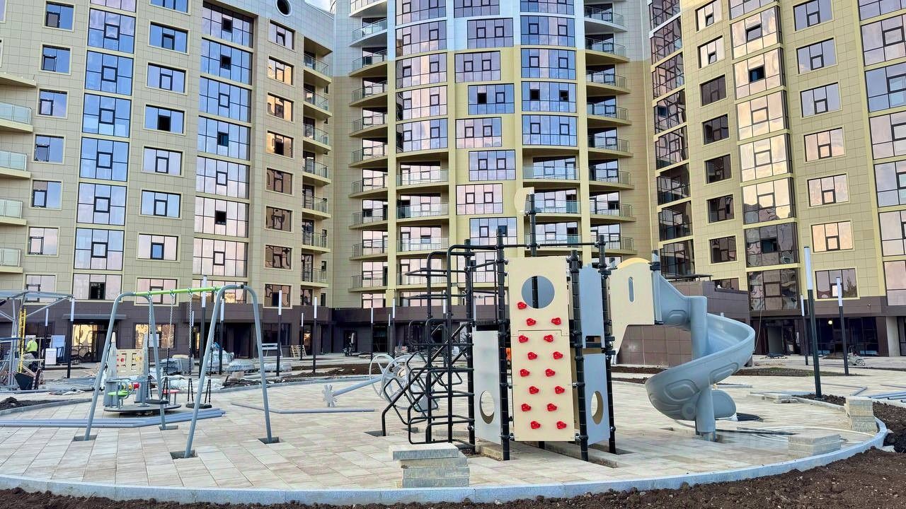Придомовая зона оформлена как приватное пространство для отдыха и жизни: детская и спортивная площадки, зоны прогулок и отдыха, ландшафтное озеленение и архитектурные инсталляции создают уютную и эстетичную атмосферу.