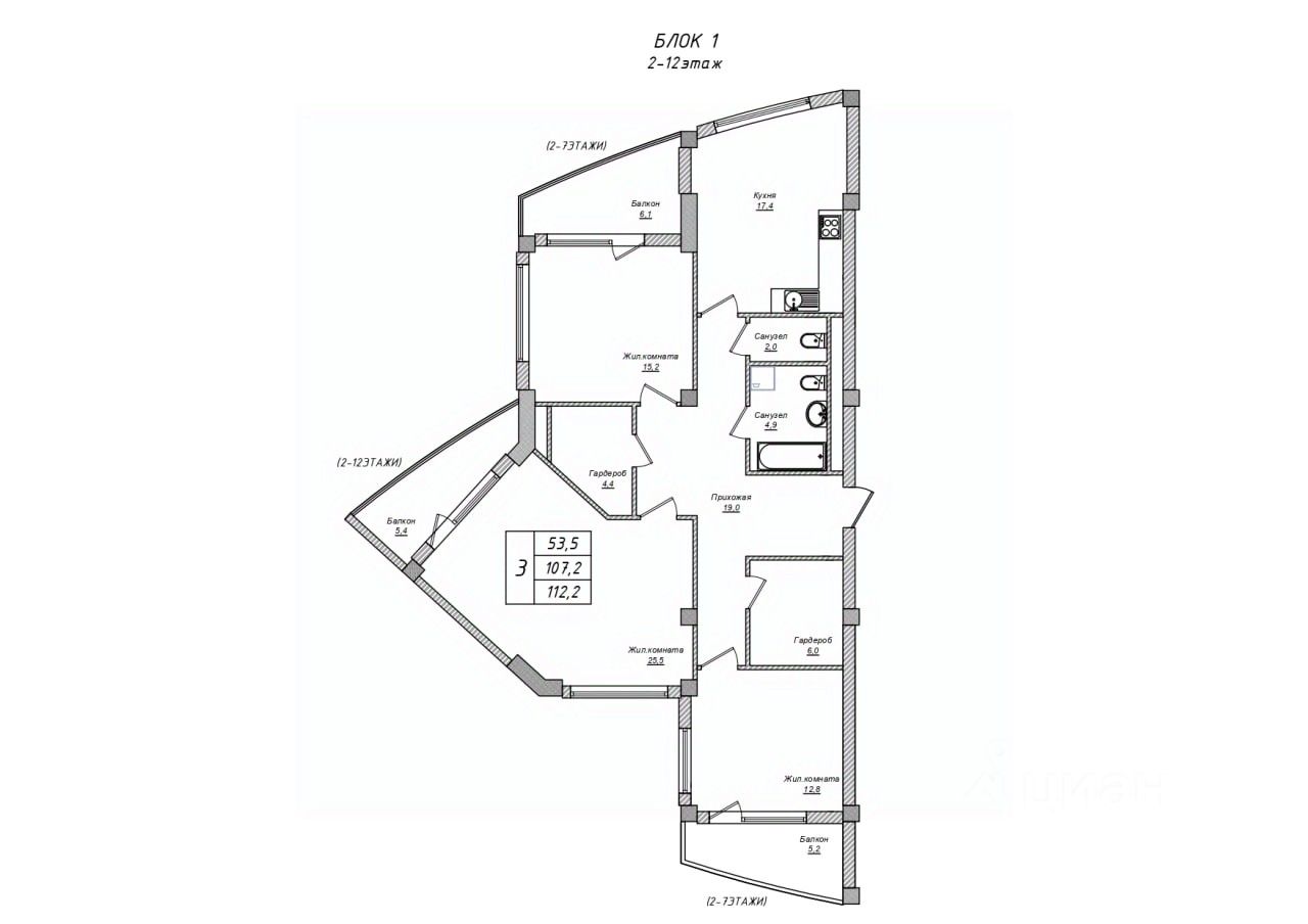 Трехкомнатная квартира площадью 111, 4 кв.м. по цене 207 900 руб. за 1 кв.м. Таких цен в центре города в новостройке нет и не будет.