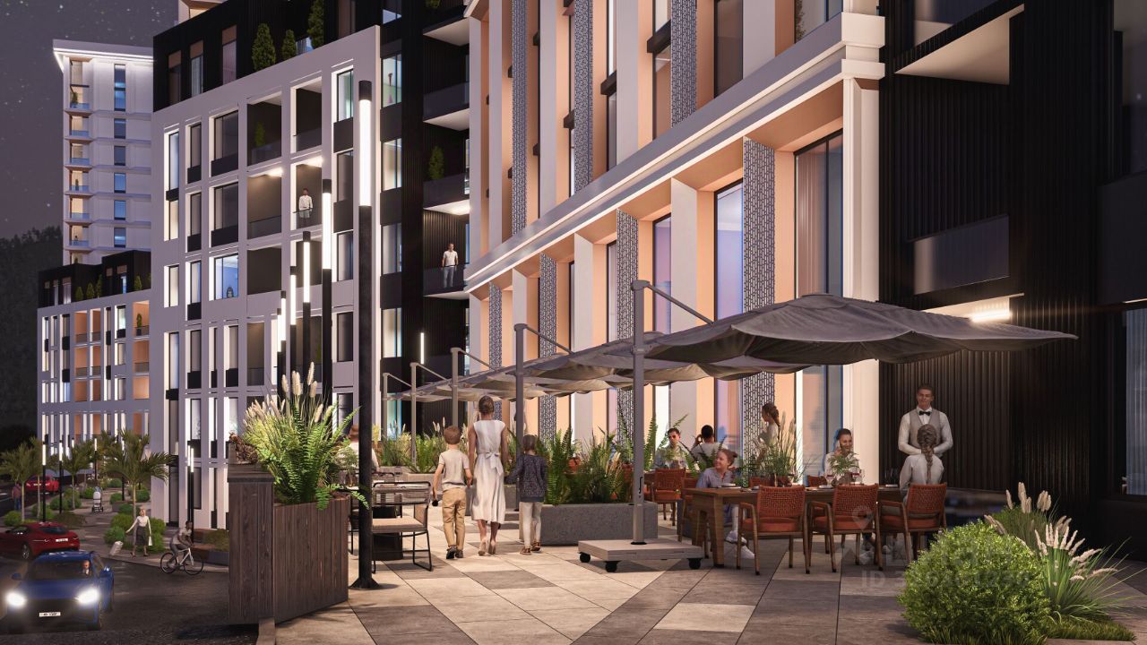Архитектура жилого комплекса спроектирована по классическому принципу разделения общественных и приватных пространств. Переменная высотность здания позволяет впустить в пространство двора и квартир больше солнечного света. Экстерьеры жилого комплекса будут выполнены из композитных элементов с применением технологии вентилируемого фасада, что обеспечит надежную защиту от внешнего воздействия и придаст домам благородный вид, воссоздавая атмосферу городского центра. Особое внимание уделено деталям, которые дополняют изысканный стиль. Панорамные окна высотой 1,8 м с ламинацией естественных оттенков будут выглядеть лаконично и придадут домам особый образ. Днем с террас и балконов откроется впечатляющий вид на море и горы, а ночью мягкая подсветка фасадов окутает атмосферой уюта. Жилой комплекс находится на возвышенности недалеко от Массандровского парка, границы Ялтинского горно-лесного заповедника, что делает его идеальным местом для жителей, ценящих уют и комфорт в гармонии с природой. Из квартир комплекса открываются завораживающие виды на горный массив и Черное море.