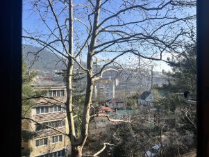 В квартире две раздельные комнаты: 1-я комната 11,2 м2 с застекленным балконом 3,4 м2, вид из окна на город и горы.