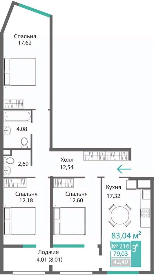 Продаётся 3-комнатная квартира в строящемся доме (Этап 4 (Секции А2, Ж2, Г4, В2, Г3)), срок сдачи: II-кв. 2028, общей площадью 83.04 кв.м., на 2 этаже. Новый жилой комплекс "Подсолнух" от застройщика "Монолит" расположен по адресу: Республика Крым, г. Симферополь, ул. Святителя Гурия