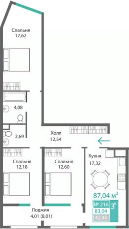 Продаётся 3-комнатная квартира в строящемся доме (Этап 4 (Секции А2, Ж2, Г4, В2, Г3)), срок сдачи: II-кв. 2028, общей площадью 83.04 кв.м., на 2 этаже. Новый жилой комплекс "Подсолнух" от застройщика "Монолит" расположен по адресу: Республика Крым, г. Симферополь, ул. Святителя Гурия