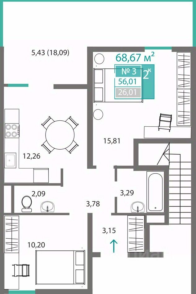 Общая площадь56,01 м²