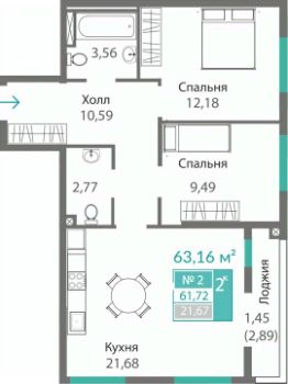 Продаётся 2-комнатная квартира в строящемся доме (Дом 2 (Секции Т2.1, Т2, К3КП1)), срок сдачи: I-кв. 2029, общей площадью 61.72 кв.м., на 2 этаже. Новый жилой комплекс "Благо" от застройщика "Монолит" расположен по адресу: Республика Крым, Симферопольский район, село Перово