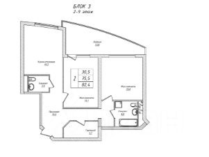 Общая площадь квартиры: 82,9 кв.м.