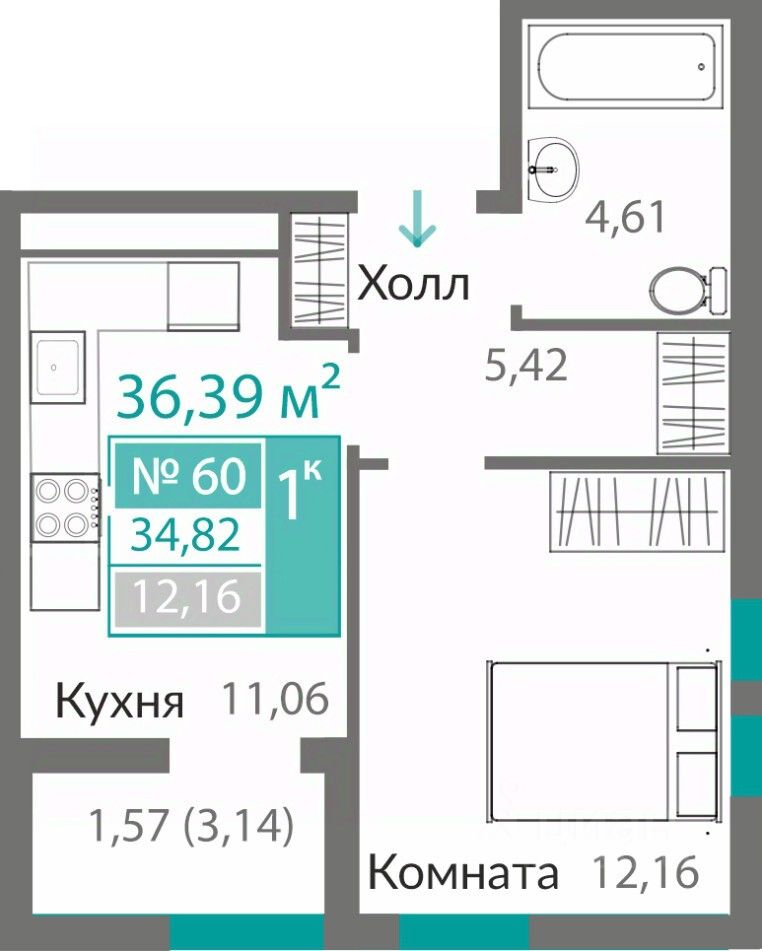 Продаётся 1-комнатная квартира в строящемся доме (11 этап (Секция А8)), срок сдачи: I-кв. 2027, общей площадью 34.82 кв.м., на 7 этаже. ОТКРЫВАЕМ НОВЫЕ ГОРИЗОНТЫ