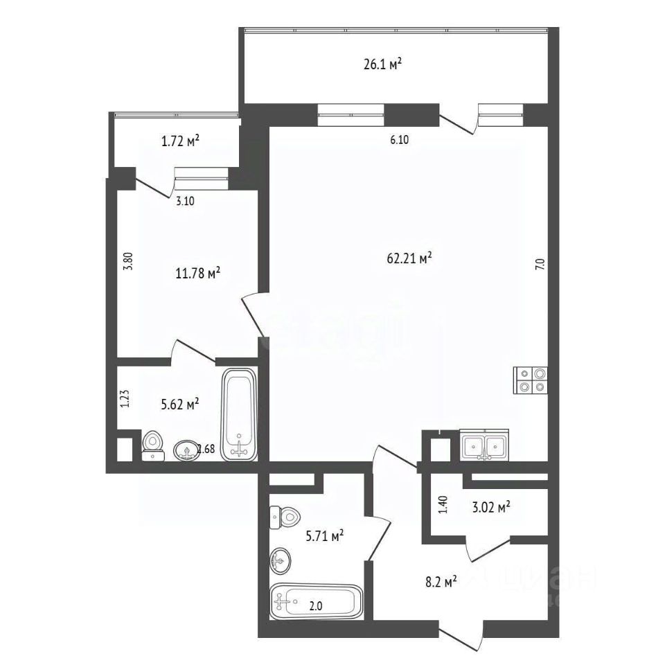 - Кухню-гостиную с выходом на просторную лоджию, откуда открываются живописные виды — идеальное место для отдыха и приема гостей. - Мастер-спальня оборудована собственной ванной комнатой и гардеробной, обеспечивая комфорт и приватность.