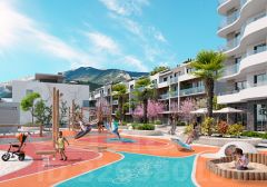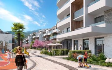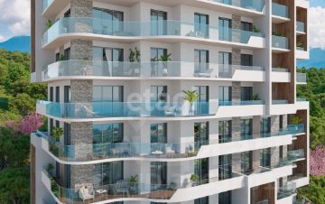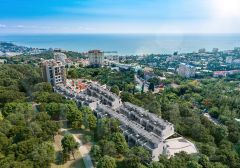 Светлая просторная квартира площадью 88,67 м² расположена в новом жилом комплексе Ялты с панорамными видами на море, горы и город.