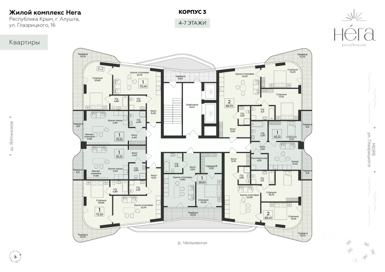 Продаётся студия в строящемся доме (Корпус 3), срок сдачи: III-кв. 2028, общей площадью 35.22 кв.м., на 7 этаже. Премиальный жилой комплекс "Нега" возводится в Профессорском уголке неподалёку от набережной, где снимался фильм "Кавказская пленница".