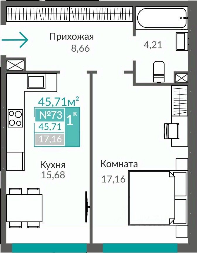 - Просторная прихожая создаст первое приятное впечатление, есть возможность разместить большой шкаф для одежды
