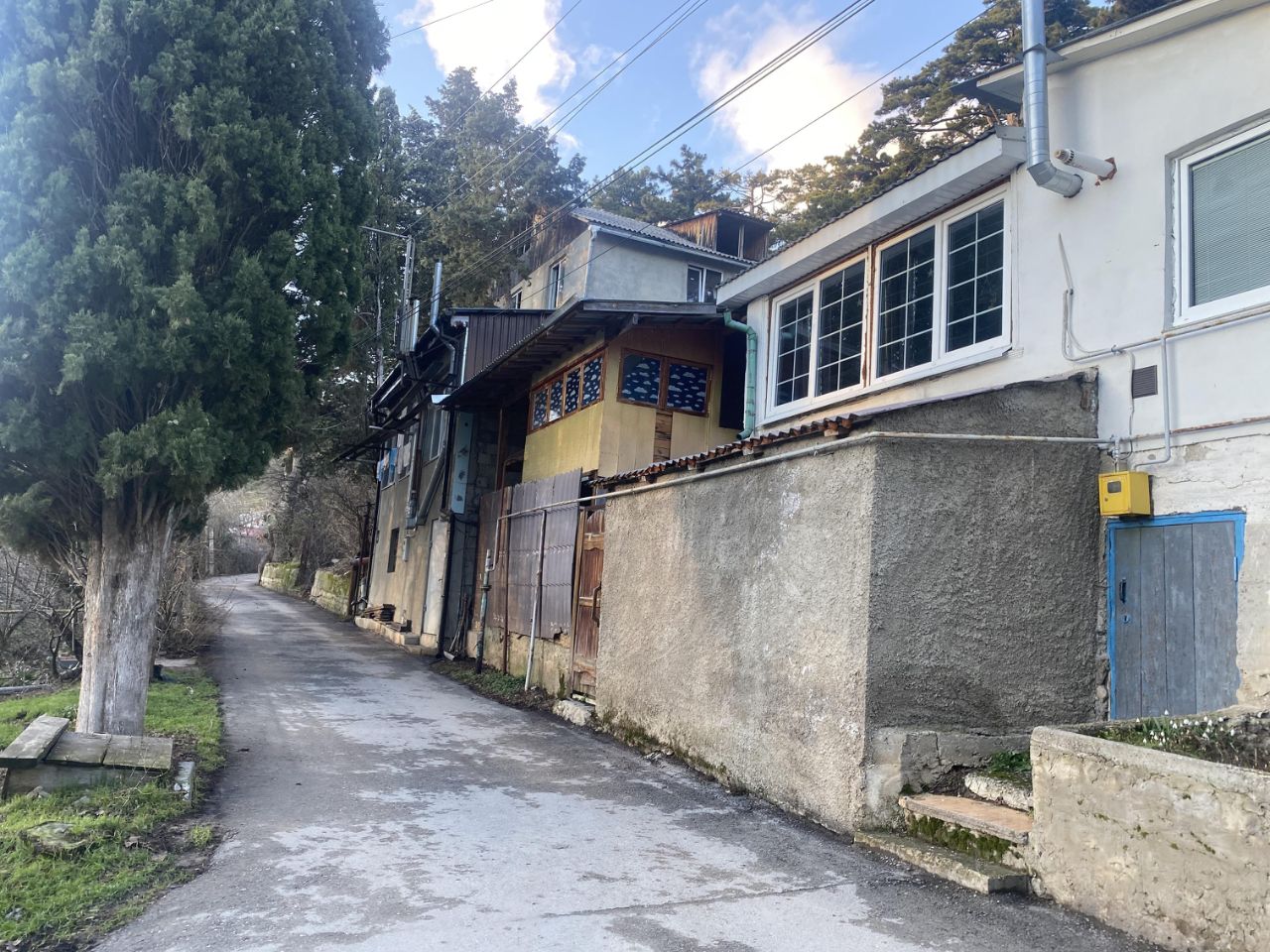 Чистый воздух, родниковая вода, тихое , спокойное место. Есть газ( одноконтурный котел на отопление), свет, центральная канализация. Статус помещения - квартира. Давно никто не жил, требует прикосновения заботливых рук. Можно поднять второй этаж. Вход в квартиру по ступенькам . Сначала попадаешь в просторную веранду, затем кухня и комната. Внизу расположен санузел. Есть сарайчик . Пешком спуститься в Массандру можно за 15-20 минут. Остановка транспорта 3 минуты. На машине до моря 15 минут. Реальному покупателю - торг!