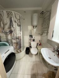 Общая площадь 44 кв м ,кухня 20 кв м , с хорошим новым ремонтом. На воду установлен новый бойлер, душ, теплые полы в ванной.
