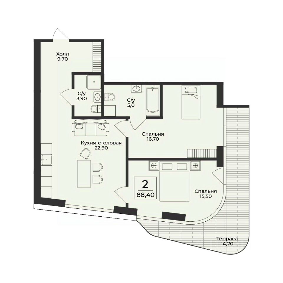 Продаётся 2-комнатная квартира в строящемся доме (Корпус 3), срок сдачи: III-кв. 2028, общей площадью 88.4 кв.м., на 5 этаже. Премиальный жилой комплекс "Нега" возводится в Профессорском уголке неподалёку от набережной, где снимался фильм "Кавказская пленница".