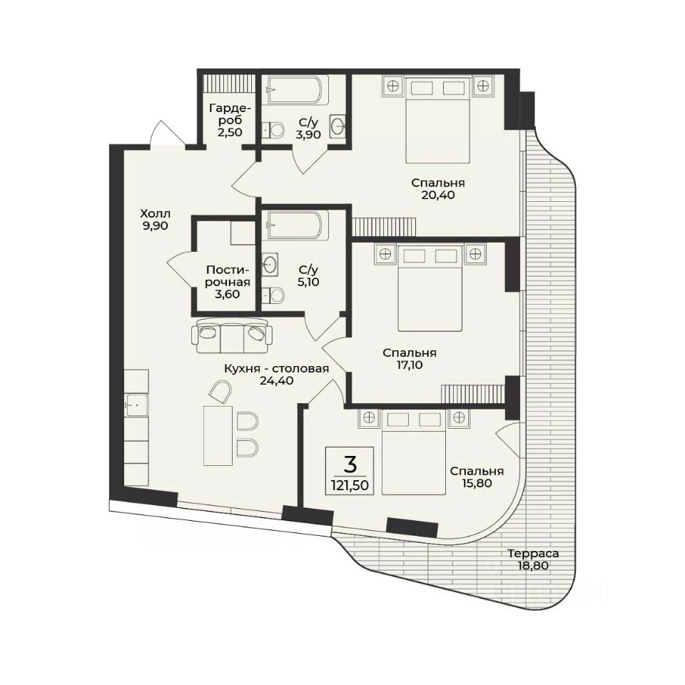 Продаётся 3-комнатная квартира в строящемся доме (Корпус 3), срок сдачи: III-кв. 2028, общей площадью 121.5 кв.м., на 8 этаже. Премиальный жилой комплекс "Нега" возводится в Профессорском уголке неподалёку от набережной, где снимался фильм "Кавказская пленница".