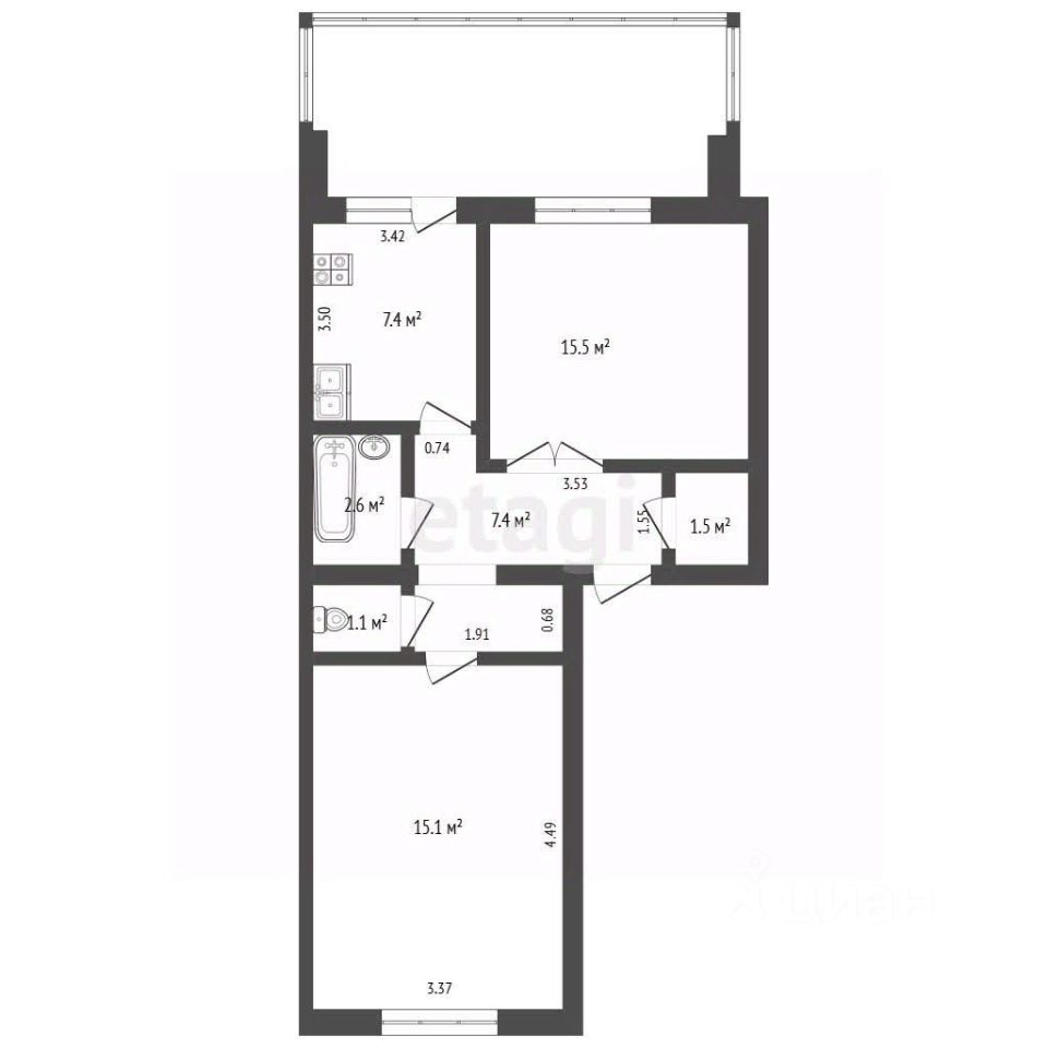 Санузел раздельный.