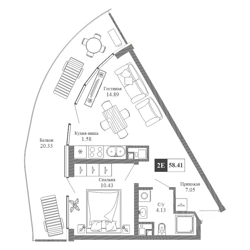 Здания оригинальной треугольной формы обеспечивают равномерное наполнение каждых апартаментов солнечным светом. Точно выверенный угол поворота корпусов позволяет любоваться завораживающими панорамами Крыма.