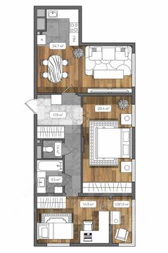 Квартира площадью 78,3 кв.м. расположена на 6 этаже 8 этажного монолитного здания.