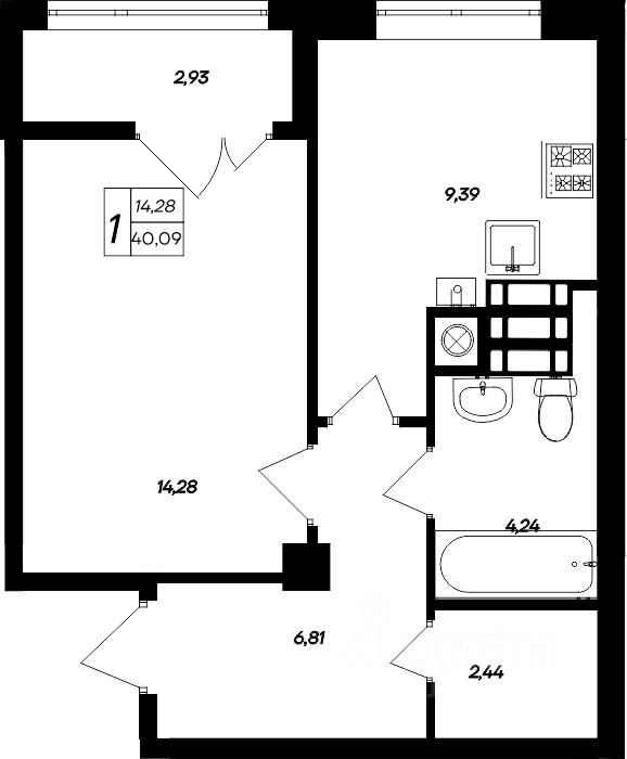 Продаётся 1-комнатная квартира в строящемся доме (Корпус 1), срок сдачи: II-кв. 2027, общей площадью 40.09 кв.м., на 7 этаже. "Парковые кварталы" - новый объект от "ИнтерСтрой"
