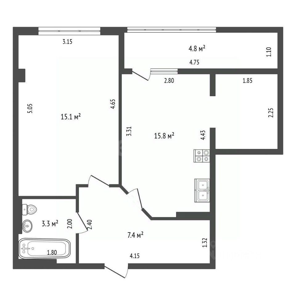 Комната: 15.1 кв.м.