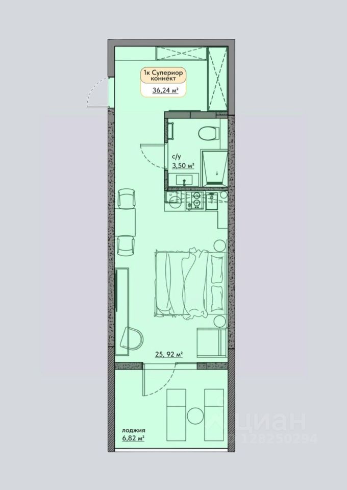 Продаётся студия-апартаменты в строящемся доме (Корпус 1), срок сдачи: IV-кв. 2027, общей площадью 36.24 кв.м., на 7 этаже.