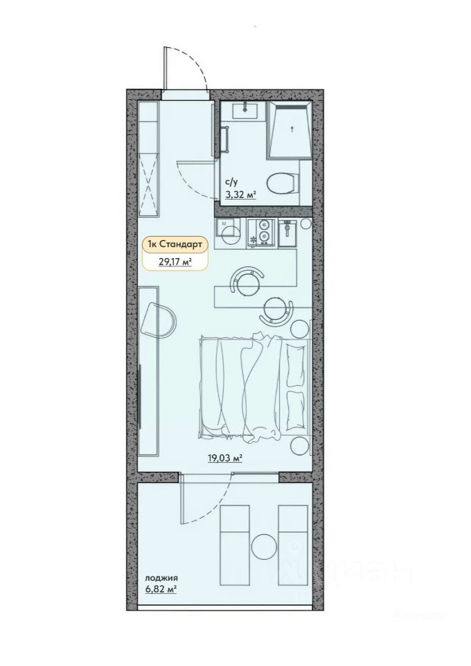 Продаётся студия-апартаменты в строящемся доме (Корпус 1), срок сдачи: IV-кв. 2027, общей площадью 29.17 кв.м., на 4 этаже.