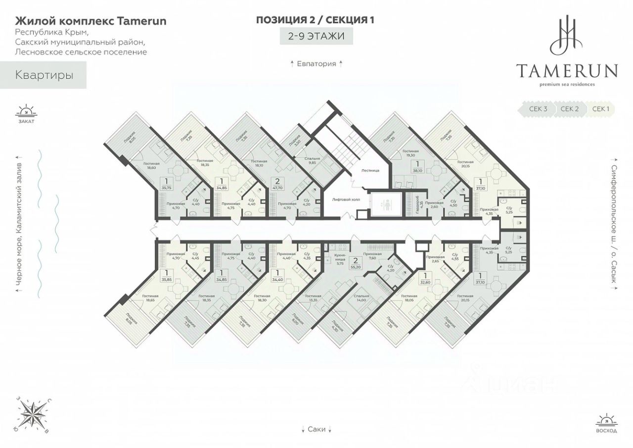 Резиденция "Tamerun" представляет собой современный комплекс из четырёх корпусов высотой 9 и 12 этажей, гармонично вписанных в живописный ландшафт. Интерьеры выполнены в изысканном элегантном стиле с применением премиальных материалов — натурального мрамора, ценных пород дерева и высококачественной кожи. Просторные помещения наполнены естественным светом благодаря большим панорамным окнам, открывающим завораживающие виды на Черное море. Атмосфера резиденции пропитана уютом и гармонией, создавая идеальные условия для комфортной жизни и отдыха.