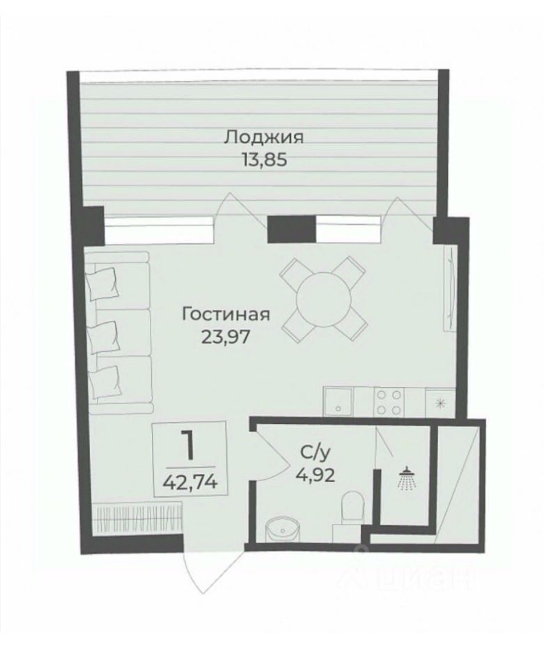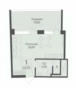 Общая площадь42,74 м²