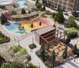 В солнечной резиденции есть всё для жизни и интересного отдыха: собственный песчаный пляж и теннисный корт, бассейны с морской водой, рестораны и летнее кафе, зона СПА и фитнес-центр, общественно-деловые пространства и подземный паркинг.