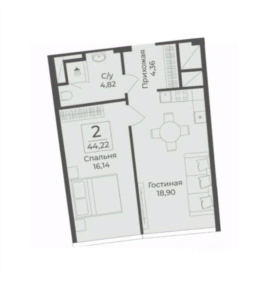 Общая площадь44,22 м²