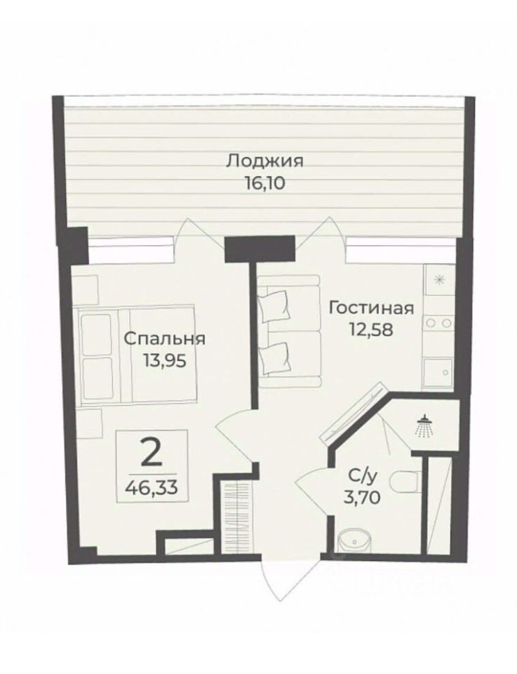 Общая площадь46,33 м²