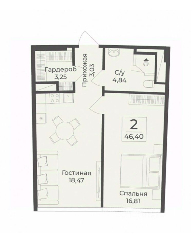 Общая площадь46,4 м²