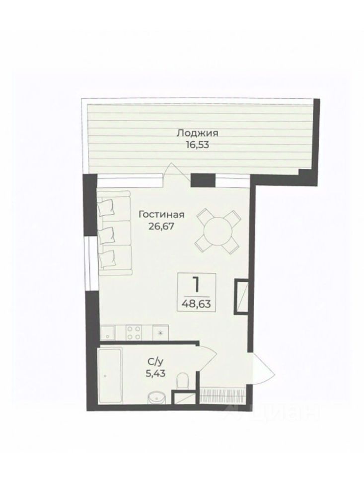 Общая площадь48,63 м²