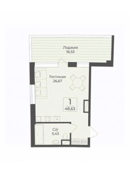 Продается апартаменты-студия, 48,63 м²