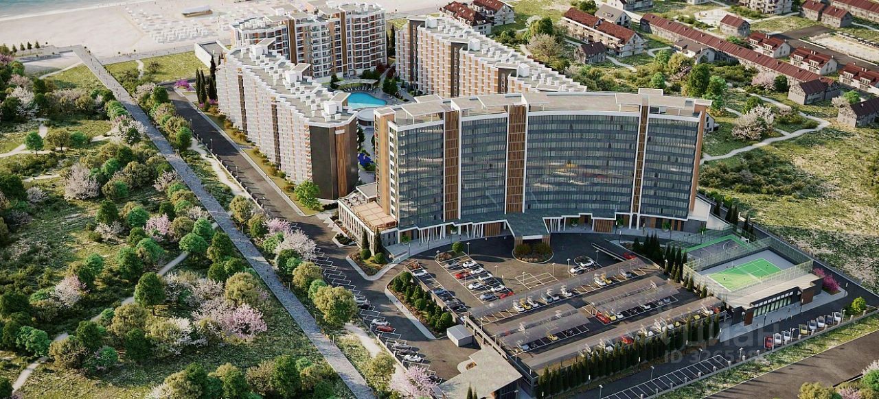 В солнечной резиденции есть всё для жизни и интересного отдыха: собственный песчаный пляж и теннисный корт, бассейны с морской водой, рестораны и летнее кафе, зона СПА и фитнес-центр, общественно-деловые пространства и подземный паркинг.