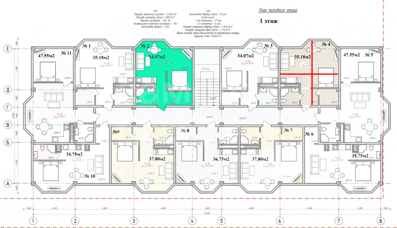 Общая площадь: 34,07 м2