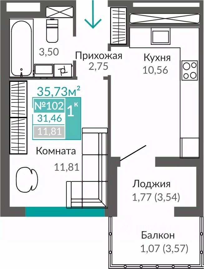 Продаётся 1-комнатная квартира в строящемся доме (С7), срок сдачи: III-кв. 2027, общей площадью 31.46 кв.м., на 6 этаже. Жилой квартал "Абрикос" - начало яркой истории жизни в прогрессивном районе Симферополя - Семья городских кварталов "Крымская Роза".